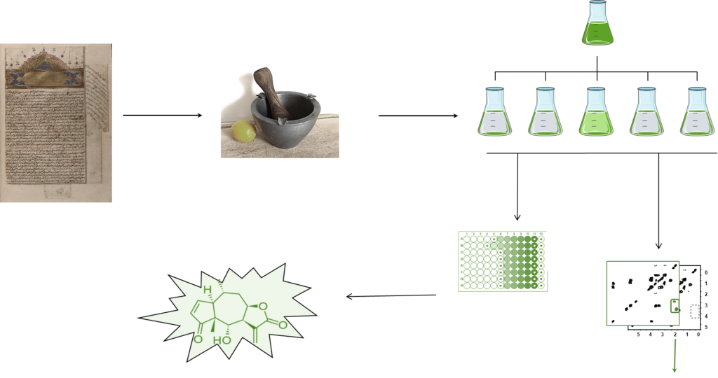 L’étude d’un remède pour soigner des plaies cutanés a permis de mettre en avant la synergie entre les ingrédients, et d’isoler des molécules aux propriétés antibactériennes du même ordre de grandeur qu’un antibiotique de référence, l’érythromycine. En cours d’investigation. Contact : Sergio Ortiz, Catherine Vonthron-Sénécheau, Pierre Fechter